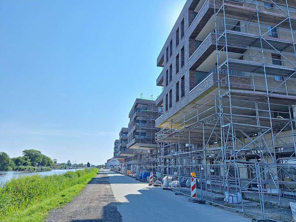 Die 2 Wohnanlagen (Baufeld 1 und 2) mit 182 Wohn- und 11 Gewerbeeinheiten befinden sich in 1. Reihe am Ryck und werden derzeit in Massivbauweise mit geplanter Fertigstellung ab Juli 2025 errichtet.