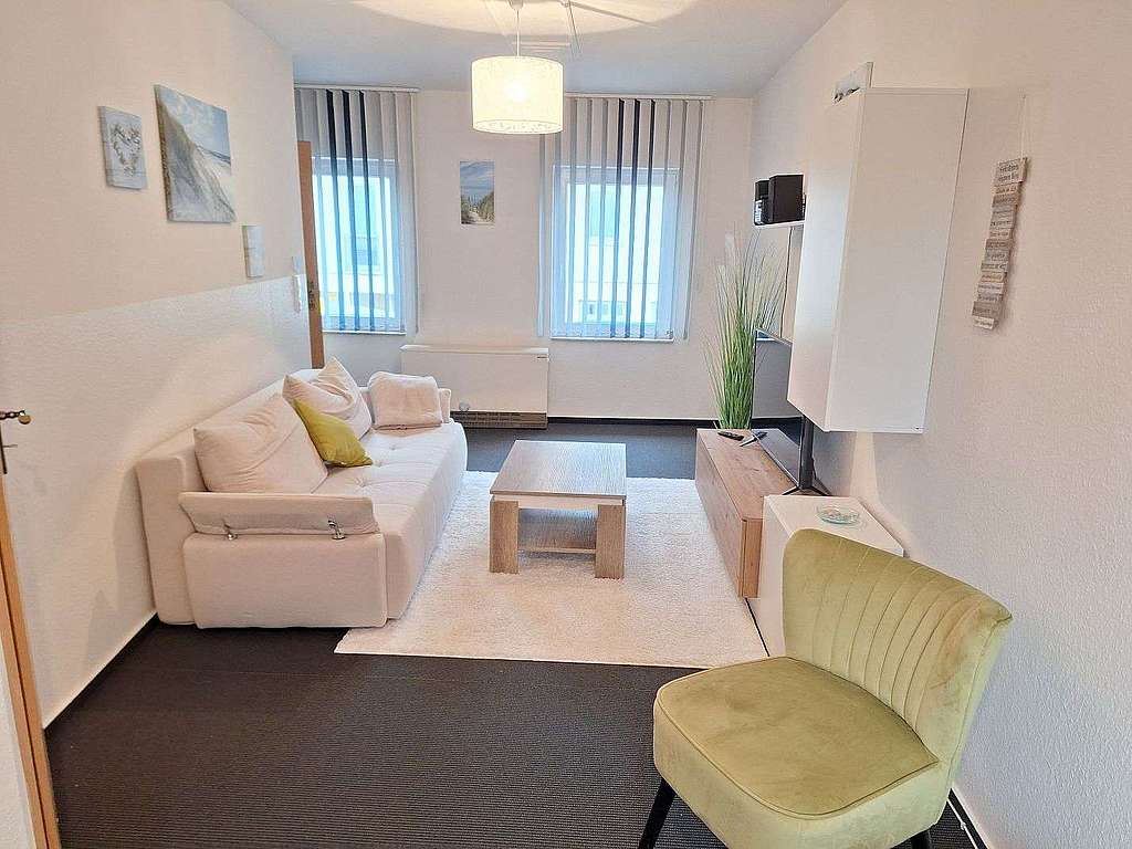Die Wohn-/ Schlafzimmer sind mit Teppich ausgestattet. Küche, Bad, WC und Flur sind gefliest. Das Objekt wird über Nachtspeicheröfen beheizt. Die Fenster bestehen aus Kunststoff und sind 2-fach verglast - im Jahr 2021 wurden die straßenseitigen Fenster mit einer Schallschutzverglasung versehen. 2020 wurde die Fassade instandgesetzt. Glasfaser liegt im Haus.