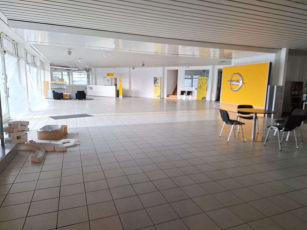 Die Gewerbeeinheit liegt ebenerdig. Der Fußboden ist gefliest.