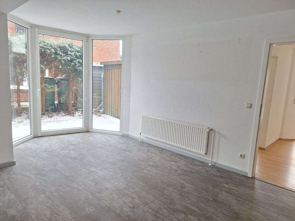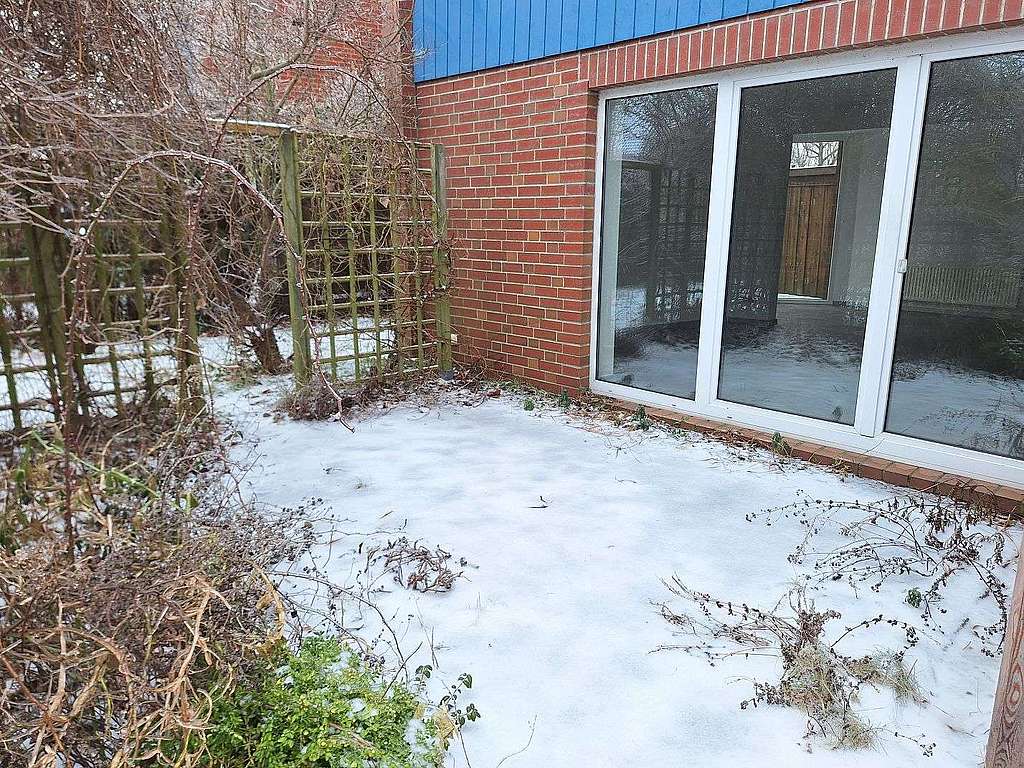 Sie verfügt im Erdgeschoss über ein großes kombiniertes Wohn- und Esszimmer mit verglastem Erker, eine Küche, einen Abstellraum und einen geräumigen Flur. Vom Wohnzimmer gelangt man auf die nach Südwesten ausgerichtete Terrasse.