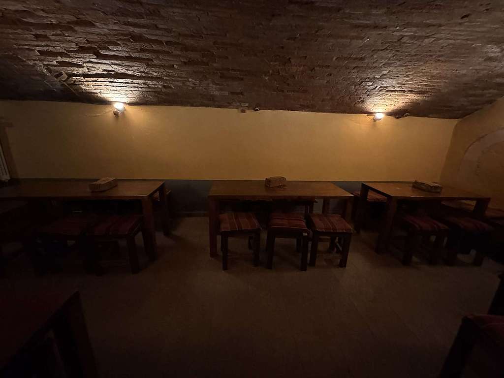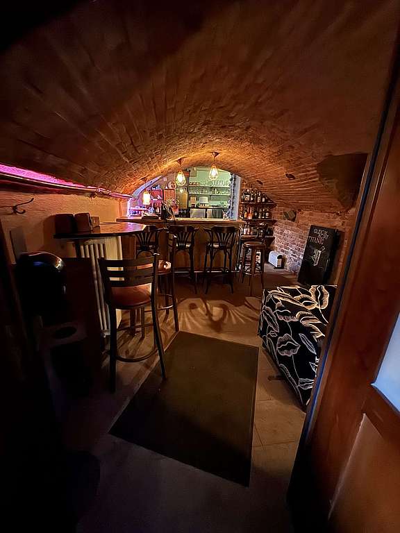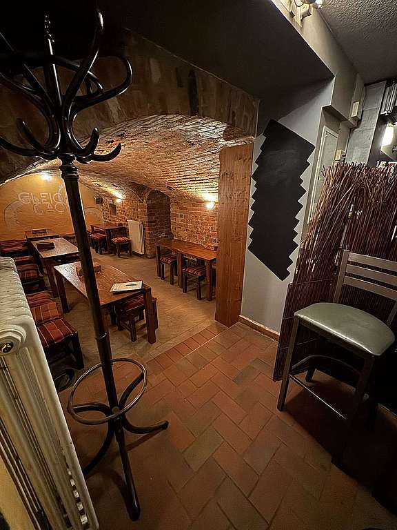 Der gemütliche Gastraum im urigen Gewölbekeller ist zweigeteilt inkl. Theke / Bar mit Kühlung, Küchenbereich und WC-Anlagen im hinteren Bereich. Der Fußboden ist gefliest. Die Bar hat einen straßenseitigen Haupteingang und einen separaten Notausgang.