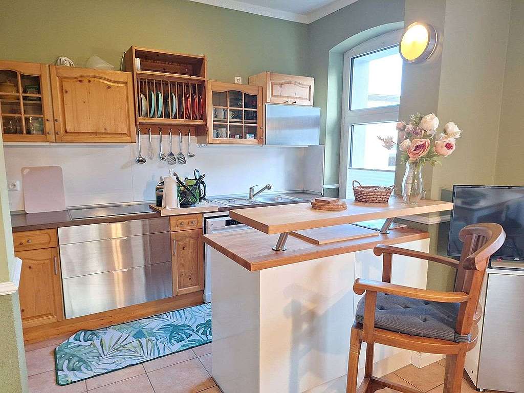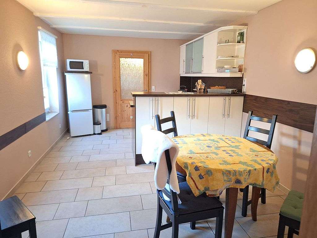 Auf dem Hof befindet sich ein ebenfalls um 1928 massiv errichtetes Nebengebäude mit einer Ferienwohnung. Dieses wurde 2013 komplett modernisiert. Auf 40,33 m² Wohnfläche stehen im Erdgeschoss ein großes Wohn-/ Schlafzimmer, eine große Wohnküche, ein Duschbad und ein Flur zur Verfügung. Über eine Treppe kann das ausgebaute Dachgeschoss begangen werden. Dieses wird mit 41,16 m² Nutzfläche und einer geringen Deckenhöhe als Schlafboden genutzt.