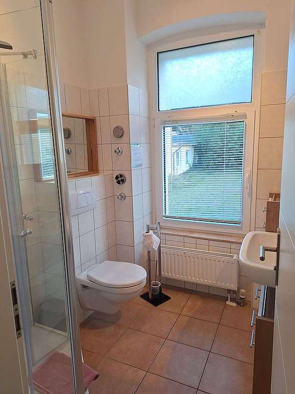 Auf dem Hof befindet sich ein ebenfalls um 1928 massiv errichtetes Nebengebäude mit einer Ferienwohnung. Dieses wurde 2013 komplett modernisiert. Auf 40,33 m² Wohnfläche stehen im Erdgeschoss ein großes Wohn-/ Schlafzimmer, eine große Wohnküche, ein Duschbad und ein Flur zur Verfügung. Über eine Treppe kann das ausgebaute Dachgeschoss begangen werden. Dieses wird mit 41,16 m² Nutzfläche und einer geringen Deckenhöhe als Schlafboden genutzt.