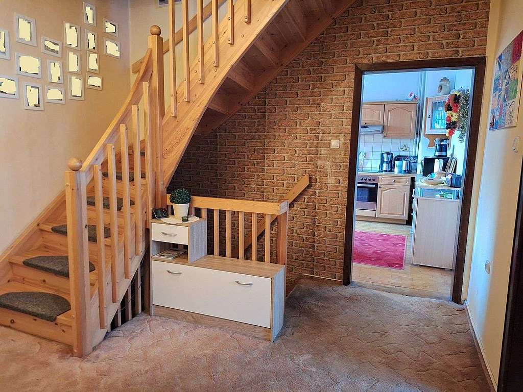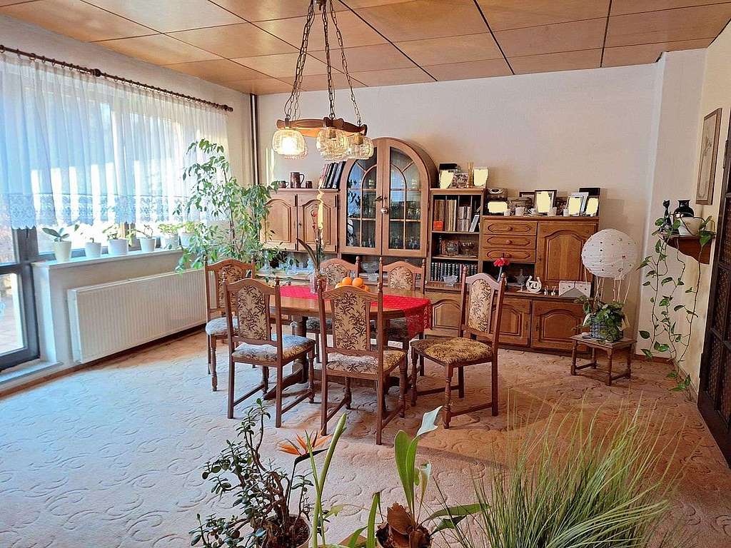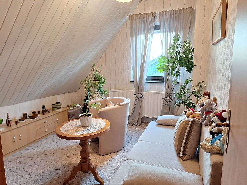 Es verfügt im Erdgeschoss über ein sehr großes Wohn-/ Esszimmer mit Zugang zur großen Sonnenterrasse in Süd-West-Ausrichtung, eine Küche, ein Gäste-WC, einen Windfang sowie einen geräumigen Flur. Von diesem gelangt man in das Dachgeschoss. Dieses umfasst drei Wohn-/ Schlafzimmer, ein Wannenbad mit Fenster sowie einen kleinen Flur.