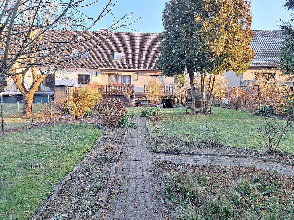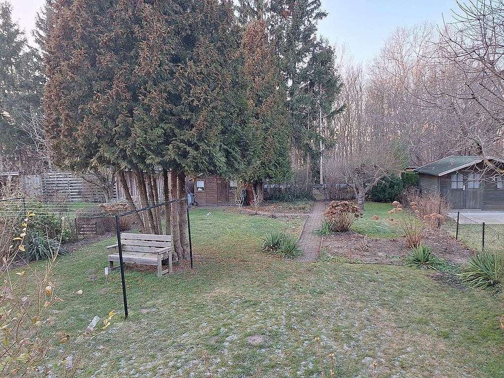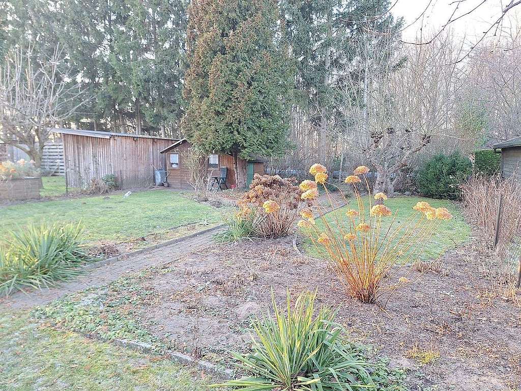 Das begrünte Grundstück umfasst eine Auffahrt mit einer PKW-Stellfläche sowie einen Geräteschuppen. Eine angrenzende Grundstücksfläche mit einer Größe von 243 m² kann dazugepachtet werden - aktueller Pachtzins ca. 486 € p.a.. Auf diesem ist ein Carport mit weiteren Stellplätzen vorhanden.