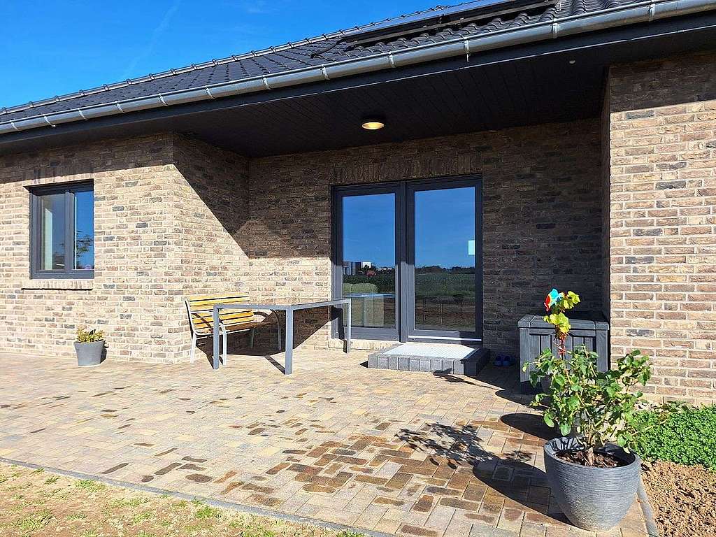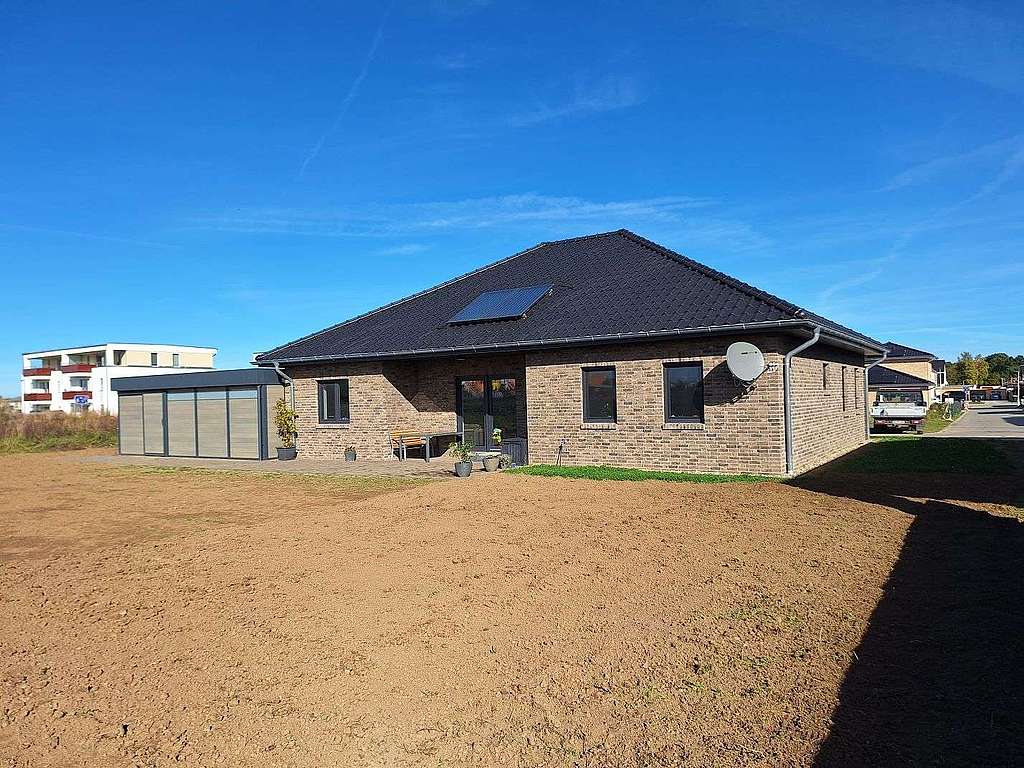 Das Einfamilienhaus liegt in einer ruhigen Nebenstrasse des noch jungen Wohngebietes. Es wurde im Jahre 2024 in Massivbauweise mit Klinkerfassade errichtet. Durch die Randlage in dem Wohngebiet ist ein wunderbarer Weitblick über ein Feld nach Süden gegeben.