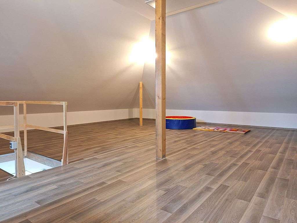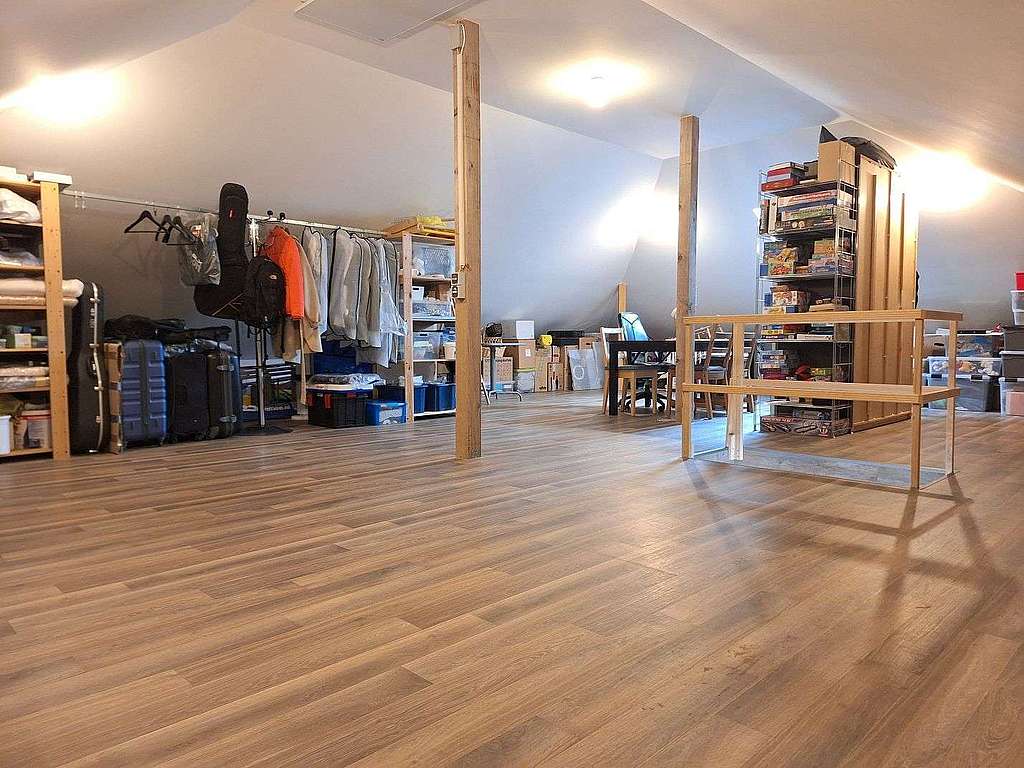 Das Dachgeschoss (ca. 53,77 m² Wfl.) wird über eine gewendelte Treppe erreicht und ist zu einem großen Raum ausgebaut; bei Bedarf ist eine weitere Unterteilung in mehrere Zimmer möglich.