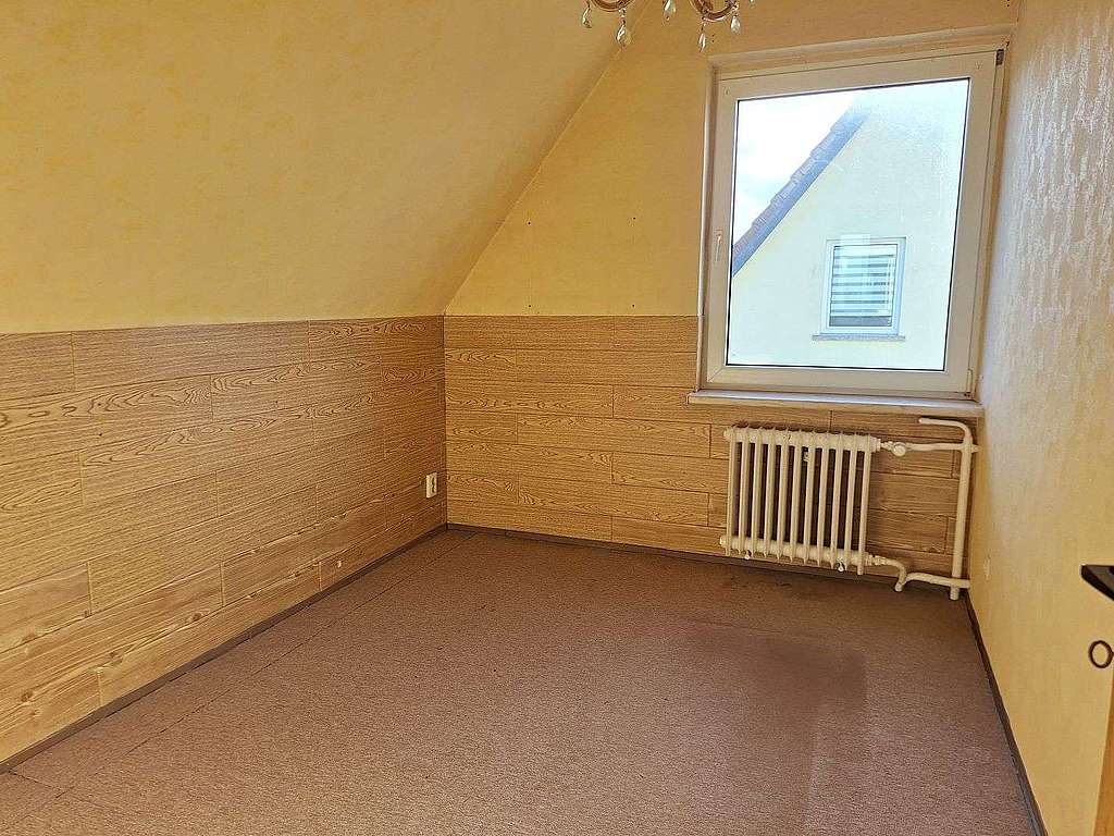 Vom Flur gelangt man über eine Treppe in das Obergeschoss. Dieses umfasst drei Wohn-/ Schlafzimmer, ein Wannenbad mit Fenster sowie einen kleinen Flur. Aus einem Zimmer und dem Bad hat man einen Wasserblick auf den Greifswalder Bodden, bei gutem Wetter bis rüber zur Insel Rügen.