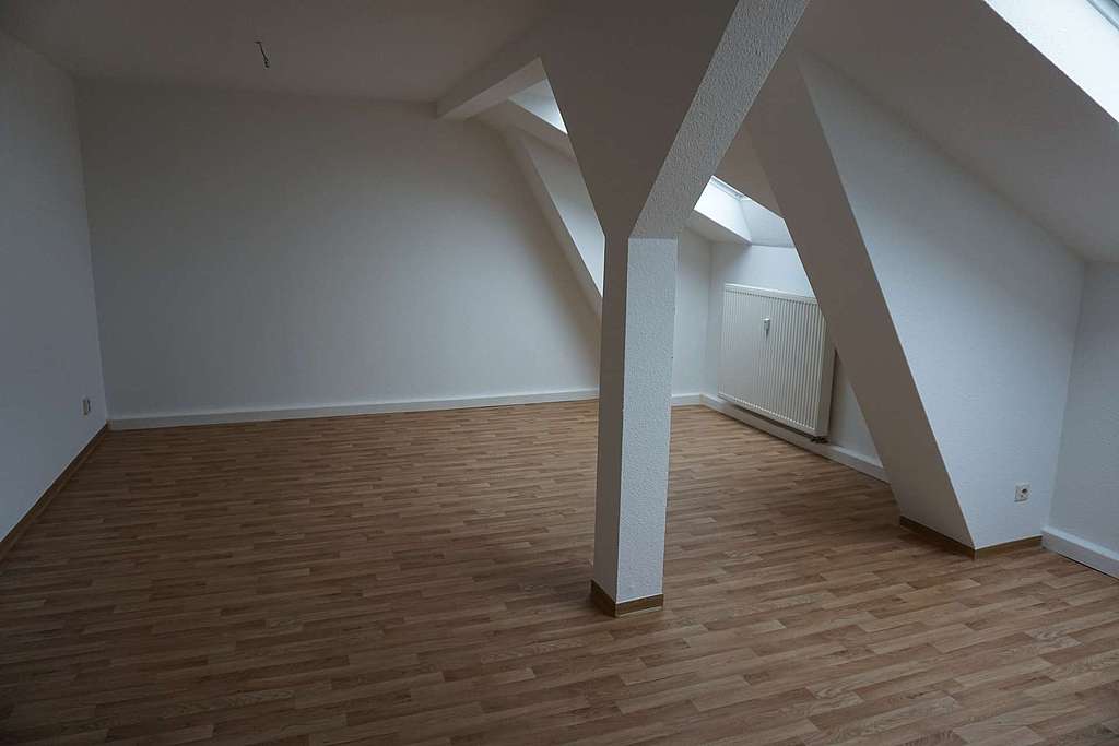 Die Wohnung befindet sich im Dachgeschoss des Wohn- und Geschäftshauses. Sie verfügt über drei separate Wohn-/Schlafzimmer, eine Küche, ein Bad mit Badewanne, Dusche und Fenster, einen Abstellraum sowie einen Flur. Die Wohnung hat Kunststofffenster mit 3-Fach-Verglasung. Alle Zimmer und die Küche verfügen über einen PVC-Fußboden; das Bad ist gefliest. Ein Stellplatz auf dem Hof kann je nach Verfügbarkeit gemietet werden; zudem gibt es dort eine Abstellmöglichkeit für Fahrräder.