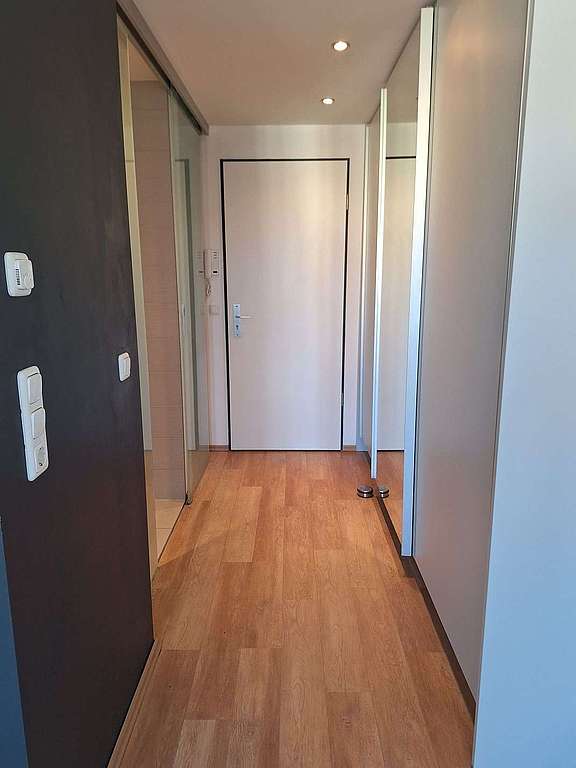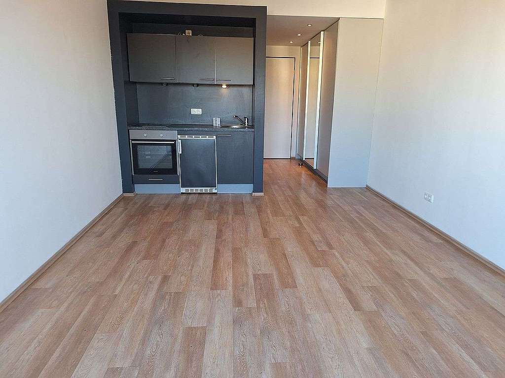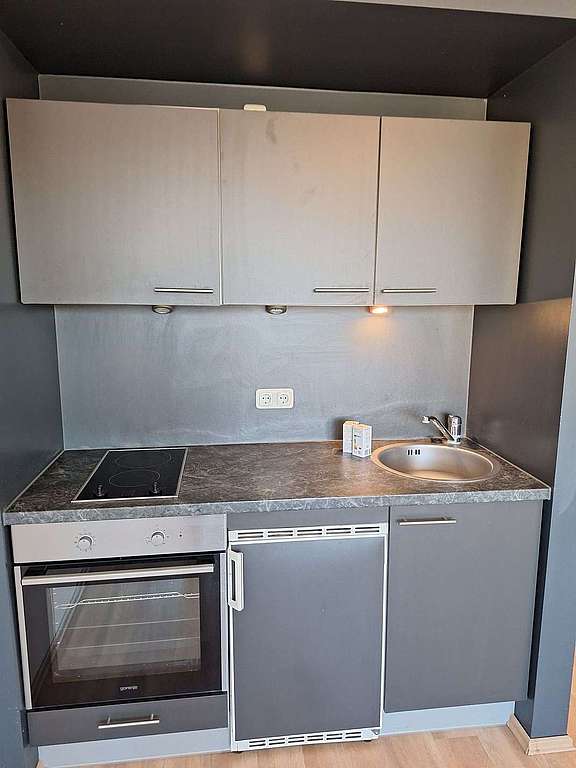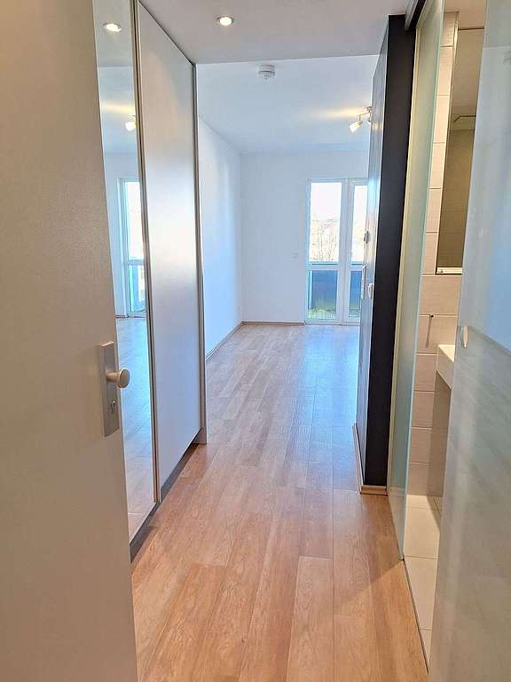 Die Eigentumswohnung verfügt über ein Wohn-/ Schlafzimmer mit Kochnische inkl. Einbauküche, einen Flur mit großem Einbauschrank, ein Bad mit ebenerdiger Dusche sowie einen Flur. Vom Zimmer gelangt man auf den Balkon mit Nord-West-Ausrichtung und einem weitläufigen Ausblick Richtung Innenstadt.